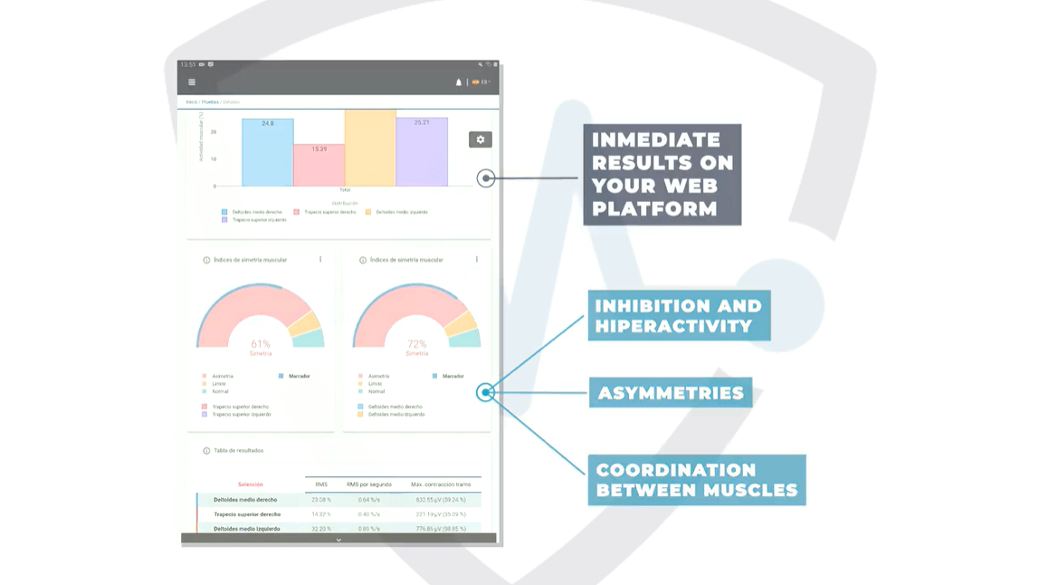Online access from any device to your private platform to deeply analyze your patient’s motor control and muscle functions.